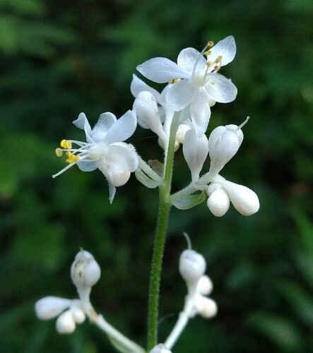 ヤブミョウガが森の中で見頃を迎えていた。名前は藪に生え葉の形がショウガ科のミョウガに似ていることに由来するが、全く異なる植物である。真っ白なかわいらしい花はアップで見るとよりかわいらしく、群生している姿も圧巻である。花が咲いた後にできる青…